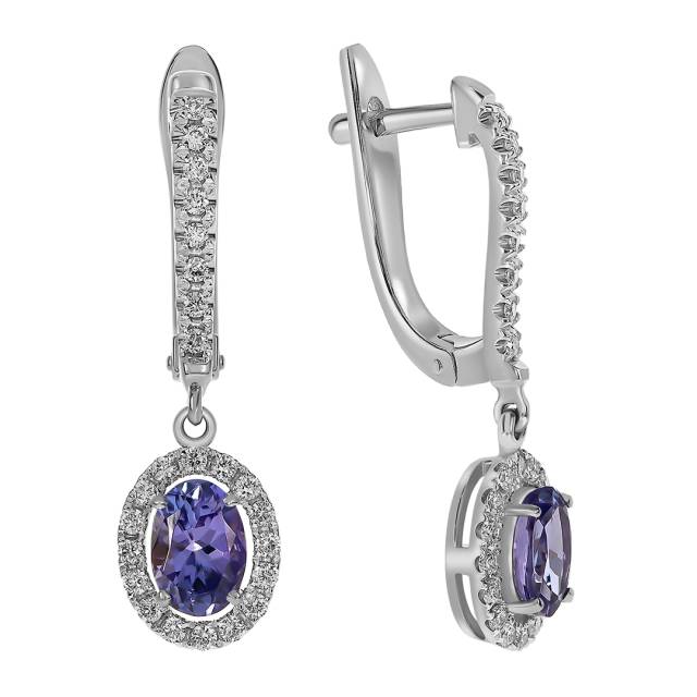 Серьги из белого золота с бриллиантами и танзанитами (061640)