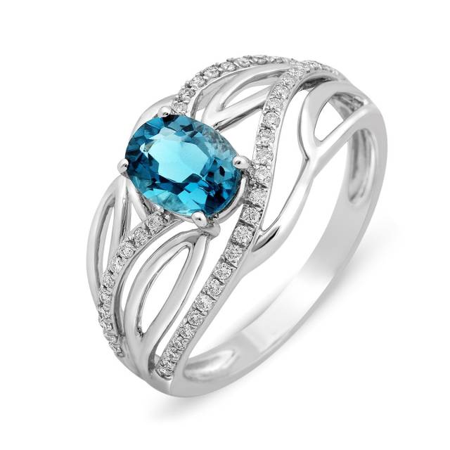 Кольцо из белого золота с бриллиантами и топазом (015106)