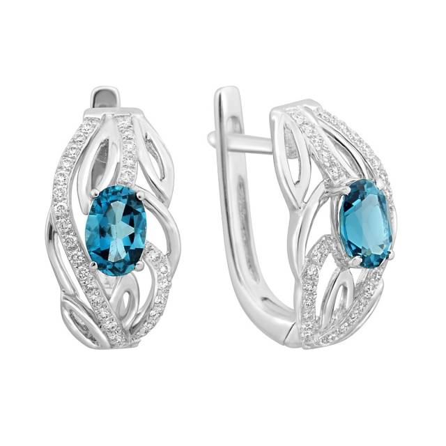 Серьги из белого золота с бриллиантами и топазами (015105)