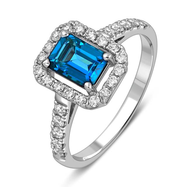 Кольцо из белого золота с бриллиантами и топазом (059443)