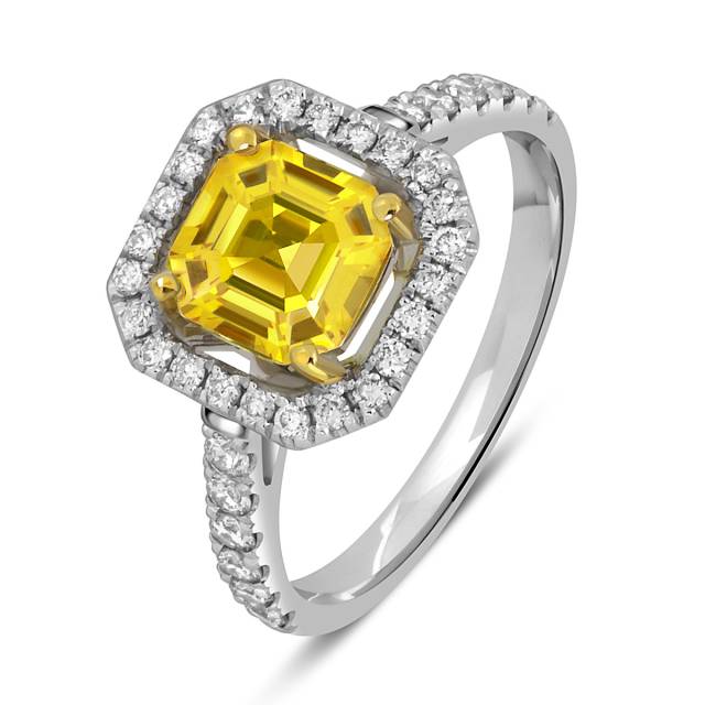 Кольцо из белого золота с бриллиантами и жёлтым сапфиром (050533)