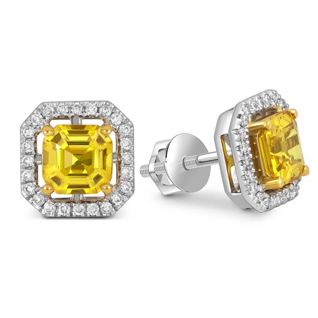 Серьги пусеты из белого золота с бриллиантами и жёлтыми сапфирами (050534)