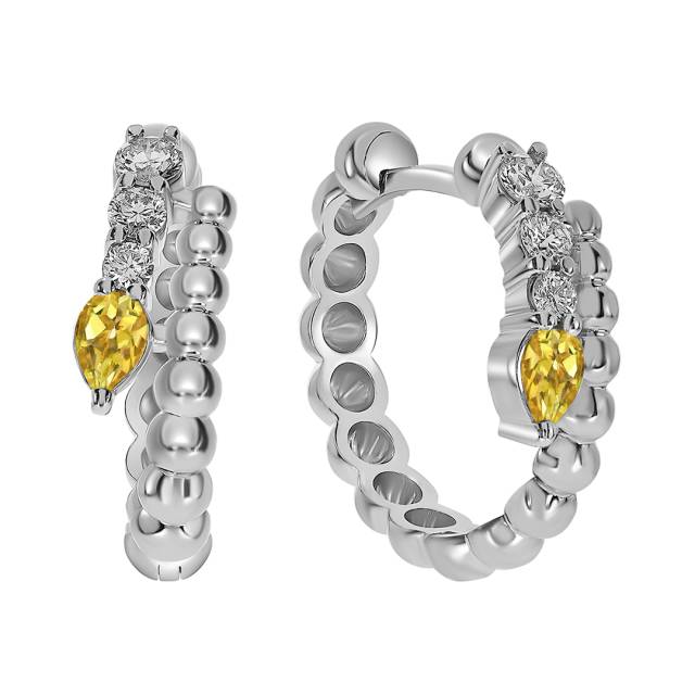 Серьги конго из белого золота с бриллиантами и жёлтыми сапфирами (060991)