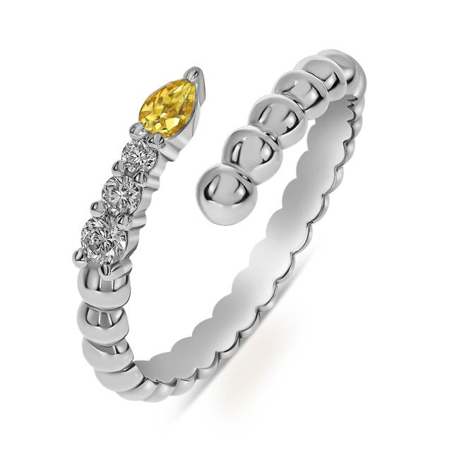 Кольцо из белого золота с бриллиантами и жёлтым сапфиром (061020)