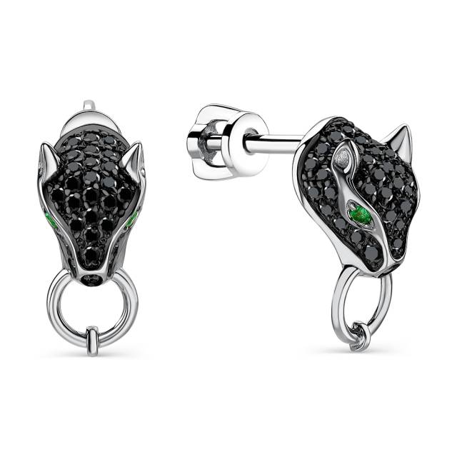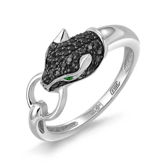 Кольцо из белого золота с чёрными бриллиантами и изумрудами (060935)