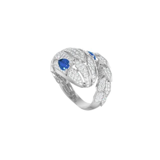 Кольцо из белого золота с фианитами и нано сапфирами (056003)