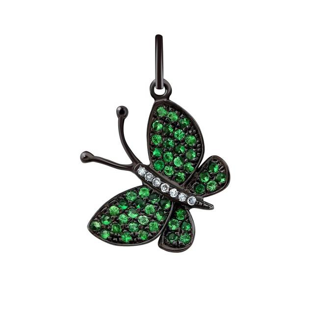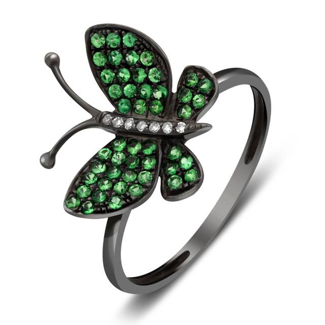 Кольцо из чернёного золота с бриллиантами и цаворитами (001195)