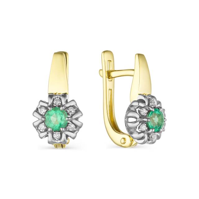 Серьги из комбинированного золота с бриллиантами и изумрудами (042197)