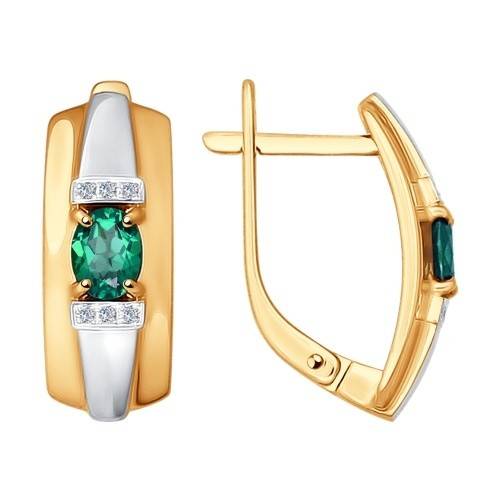 Серьги из комбинированного золота с бриллиантами и изумрудами (026203)