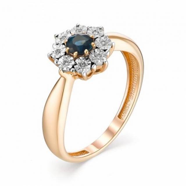 Кольцо из красного золота с бриллиантами и сапфиром (034734)