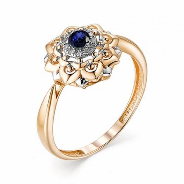 Кольцо из комбинированного золота с бриллиантами и сапфиром (038794)