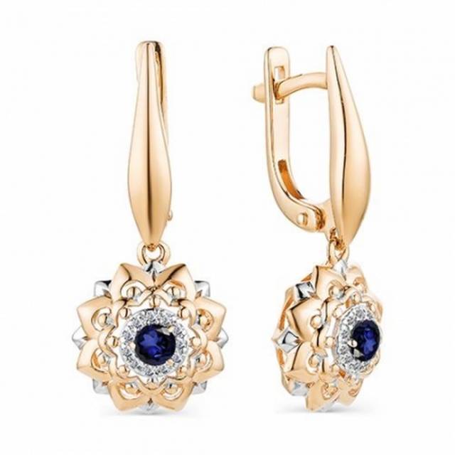 Серьги из комбинированного золота с бриллиантами и сапфирами (038795)