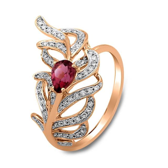 Кольцо из комбинированного золота с бриллиантами и турмалином (025933)