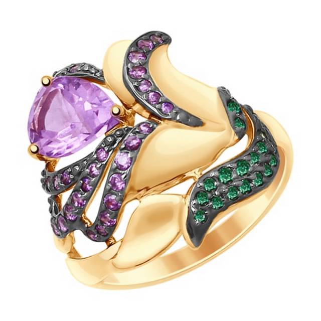 Кольцо из красного золота с аметистом и цветными фианитами (038322)