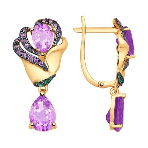 Серьги из красного золота с аметистами и цветными фианитами (038348)