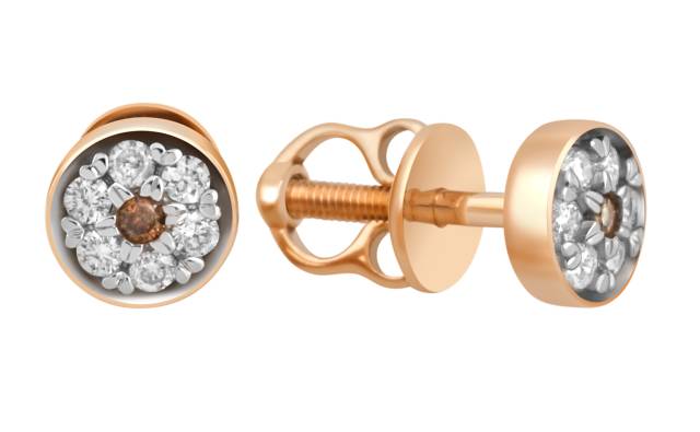 Серьги пусеты из красного золота с бриллиантами (044481)