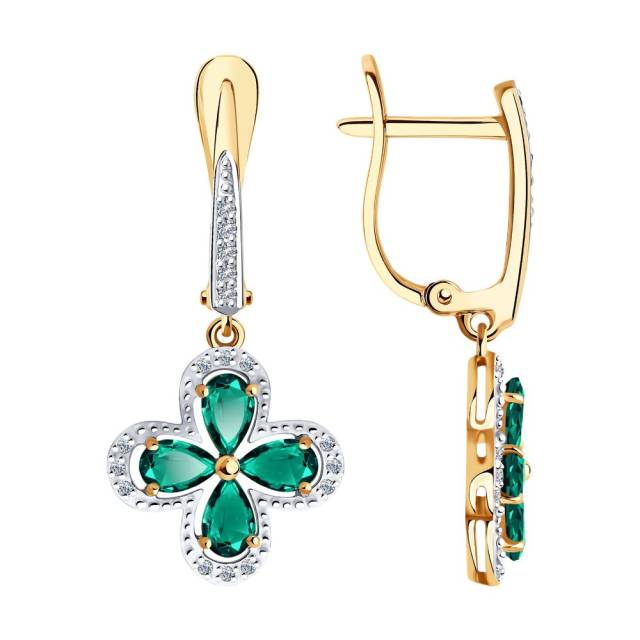 Серьги из красного золота с бриллиантами и изумрудами (043314)