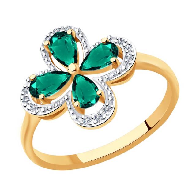 Кольцо из жёлтого золота с бриллиантами и изумрудом (055605)