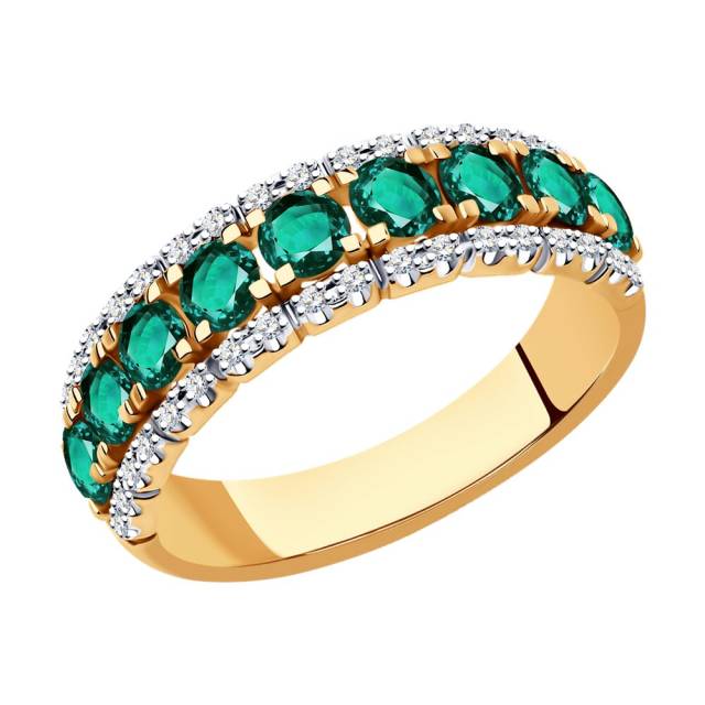 Кольцо из красного золота с бриллиантами и изумрудами (052869)