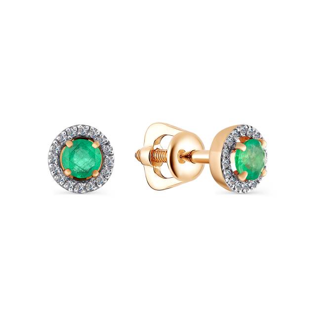 Кольцо из красного золота с бриллиантами и изумрудом (032883)