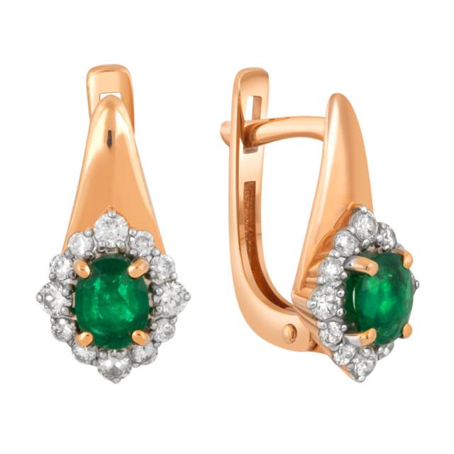 Серьги из красного золота с бриллиантами и изумрудами (036201)