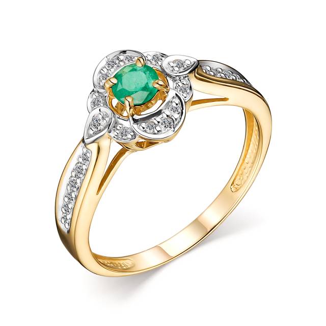 Кольцо из красного золота с бриллиантами и изумрудом (048321)