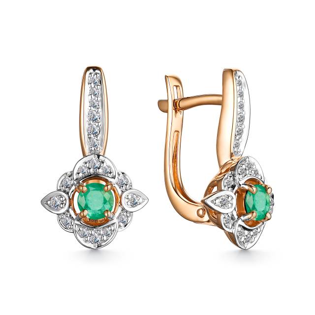 Серьги из красного золота с бриллиантами и изумрудами (048331)