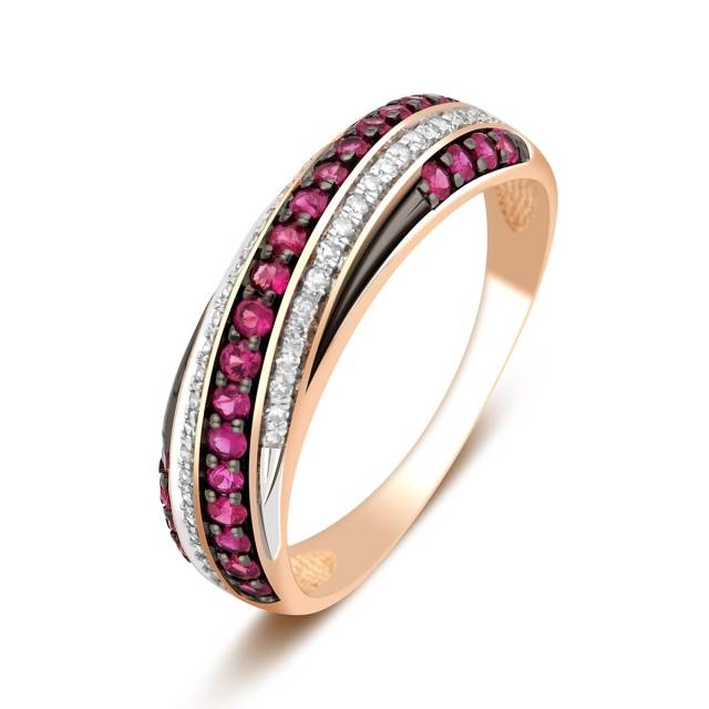 Кольцо из красного золота с бриллиантами и рубинами (024057)