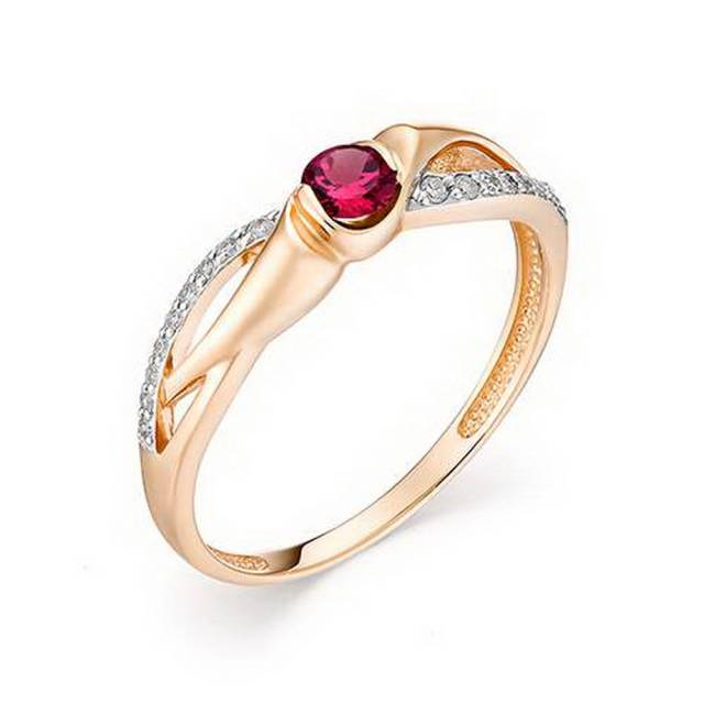 Кольцо из красного золота с бриллиантами и рубином (034845)