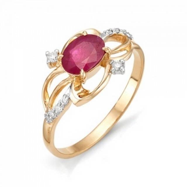 Кольцо из красного золота с бриллиантами и рубином (036196)