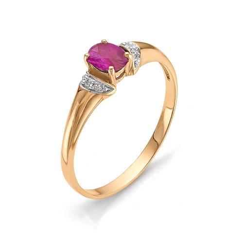 Кольцо из красного золота с бриллиантами и рубином (042002)