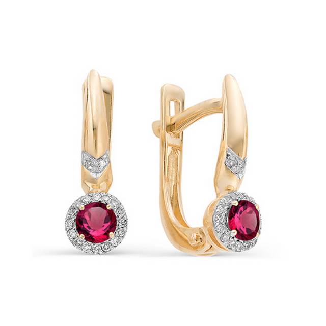 Серьги из комбинированного золота с бриллиантами и рубинами (038776)