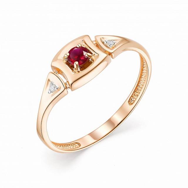 Кольцо из красного золота с бриллиантами и рубином (043131)