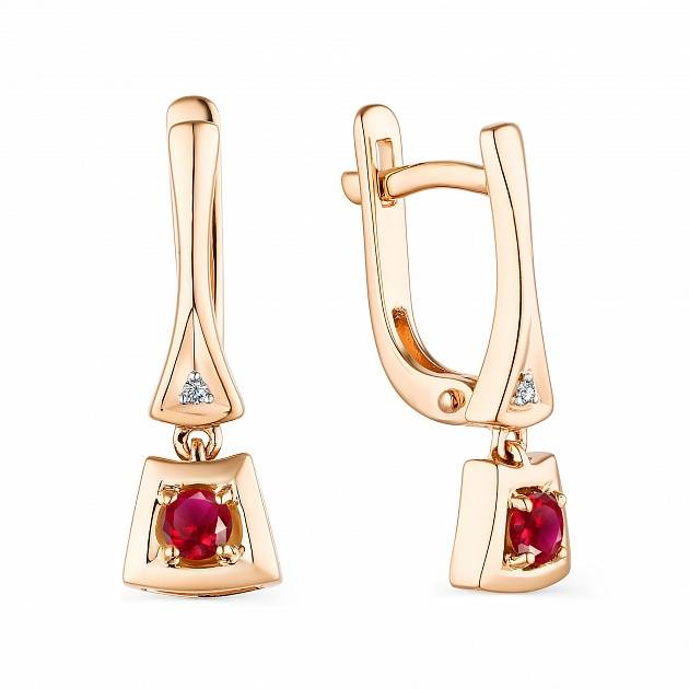 Серьги из красного золота с бриллиантами и рубинами (043152)