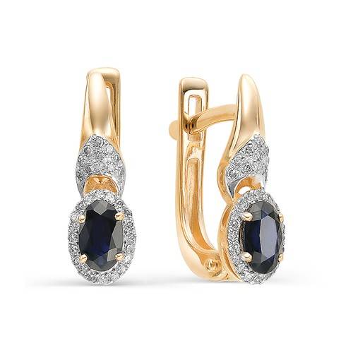 Серьги из красного золота с бриллиантами и сапфирами (032331)