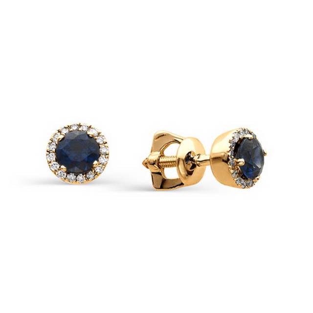 Серьги пусеты из красного золота с бриллиантами и сапфирами (033158)