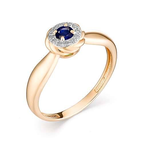 Кольцо из красного золота с бриллиантами и сапфиром (033538)