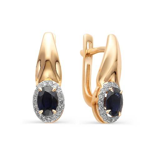 Серьги из красного золота с бриллиантами и сапфирами (034603)