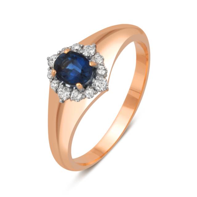 Кольцо из красного золота с бриллиантами и сапфиром (036181)
