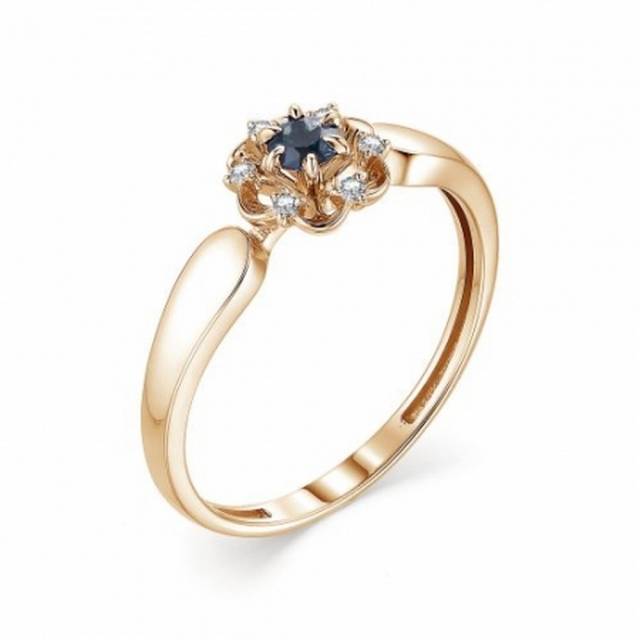 Кольцо из красного золота с бриллиантами и сапфиром (039509)