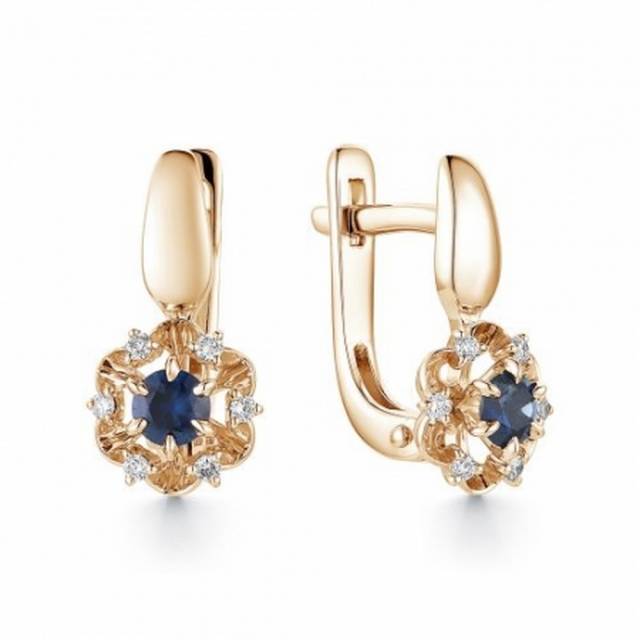 Серьги из красного золота с бриллиантами и сапфирами (039545)