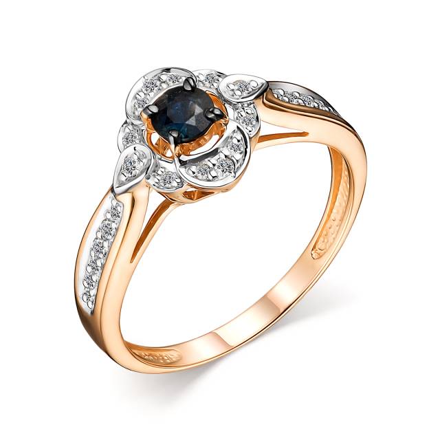 Кольцо из красного золота с бриллиантами и сапфиром (048322)