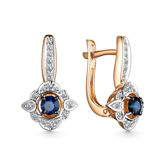 Серьги из красного золота с бриллиантами и сапфирами (048332)