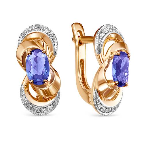 Серьги из красного золота с бриллиантами и танзанитами (043787)