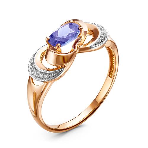 Кольцо из красного золота с бриллиантами и танзанитом (043765)
