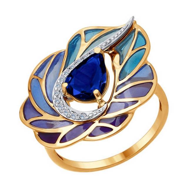 Кольцо из красного золота с бриллиантами, сапфиром и эмалью (038418)