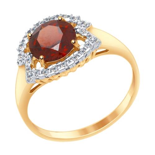 Кольцо из красного золота с гранатом и фианитами (038320)