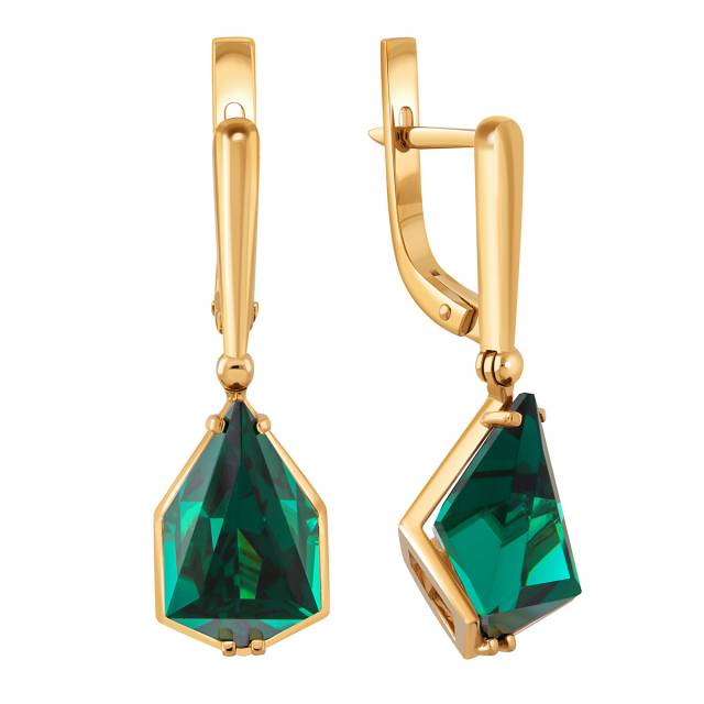 Серьги из красного золота с искусственными зелёными турмалинами "Айсберг" (041179)