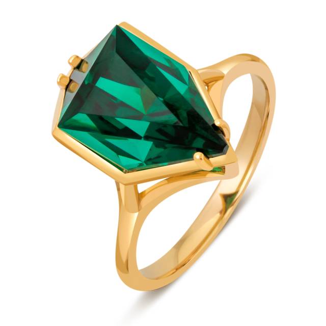 Кольцо из красного золота с искусственным зелёным турмалином "Айсберг" (041177)