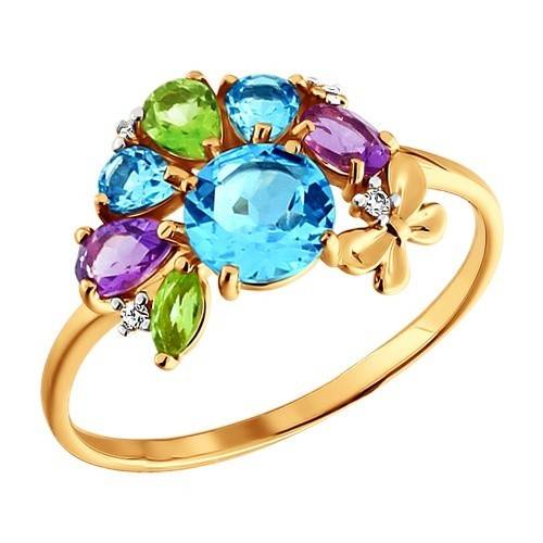 Кольцо из красного золота с полудрагоценными камнями и фианитами (027818)